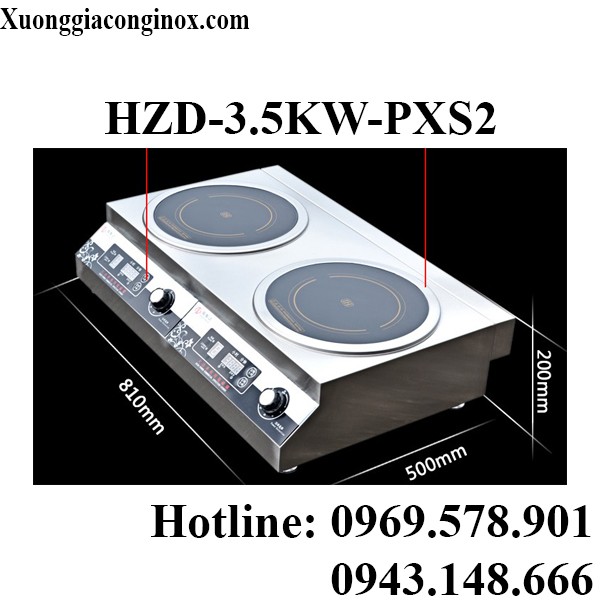 Bếp từ công nghiệp đôi 1 mặt phẳng 1 mặt lõm 3.5KW HZD-3.5KW-2AXS
